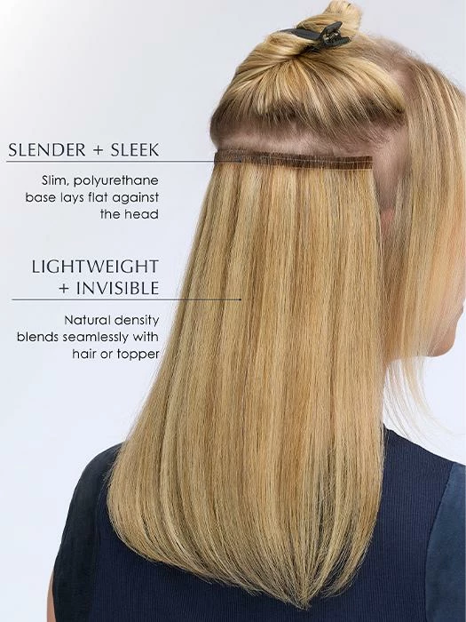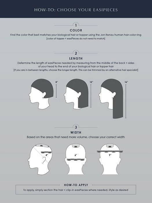 easiPieces are your topper’s best friend! Created to be worn accompanying your topper, easiPieces were simply designed to add subtle, balanced volume that complements a lightweight topper for a full, natural look. However, easiPieces can be worn with or without a topper depending on desired look. Even though this piece is not a hair extension and will not add length to your hair, you can create the look of layers by using the 8” Length and 16” Length pieces. We recommend 4-6 pieces for a full voluminous look. Made with the highest quality Remy Human Hair, easiPieces have a slim, slender polyurethane base, which will give you an undetectable volume.
