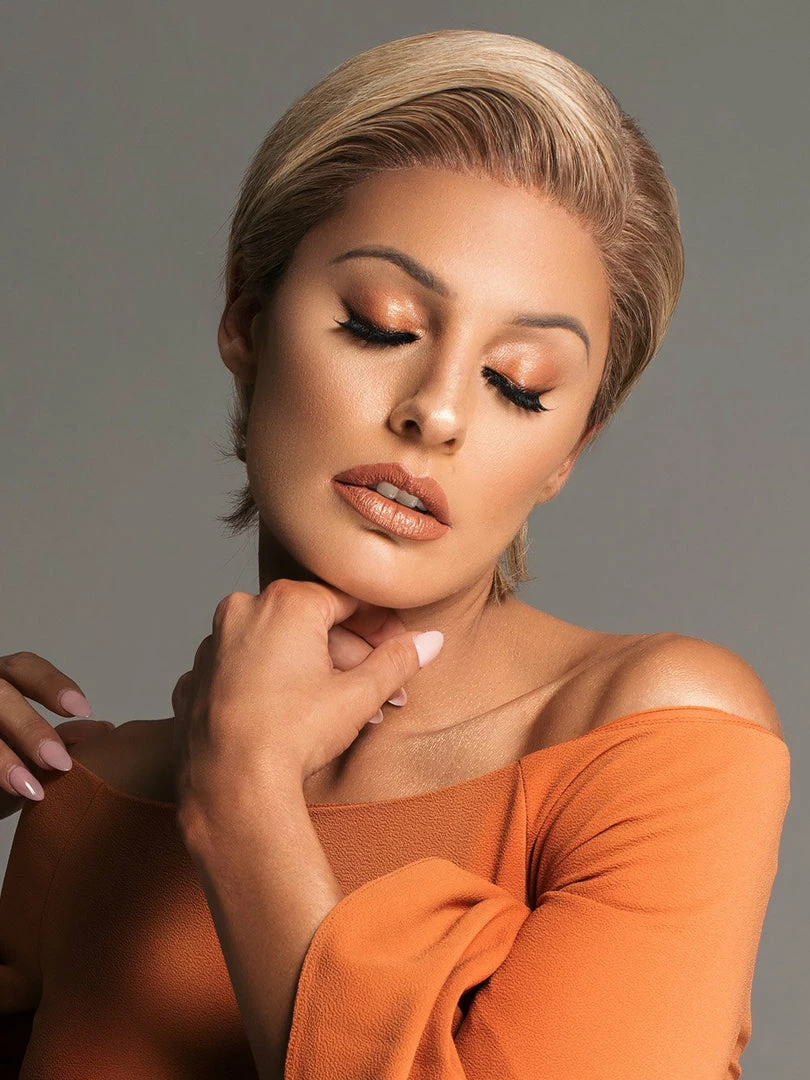 The Allure Wig by Ellen Wille is an artistically feathered and elegant style. This perfectly designed short wig is full and able to be to be styled straight or curly as it is made with Ellen Wille’s innovative Prime Hair Blend. The tapered fringe falls at the cheekbone and is what makes this style one you can keep reinventing over and over! Unlimited styling versatility; sleek and smooth, modern and slicked back or tucked beautifully behind the ear. The longer layers on the top and sides allow you to accentuate the natural density of volume or embrace the softer side by laying more sleek. In the nape, there is a perfectly contoured hairline that hugs the neck area, ensuring for a secure and comfortable fit. Allure features an impeccable, ear to ear extended lace front for a flawless, natural hairline. The beautiful artform of Ellen’s hand tied knotting can be seen in the full monofilament top. The sides and back are designed with wefting to assist with a cool, comfortable style you can wear every day.