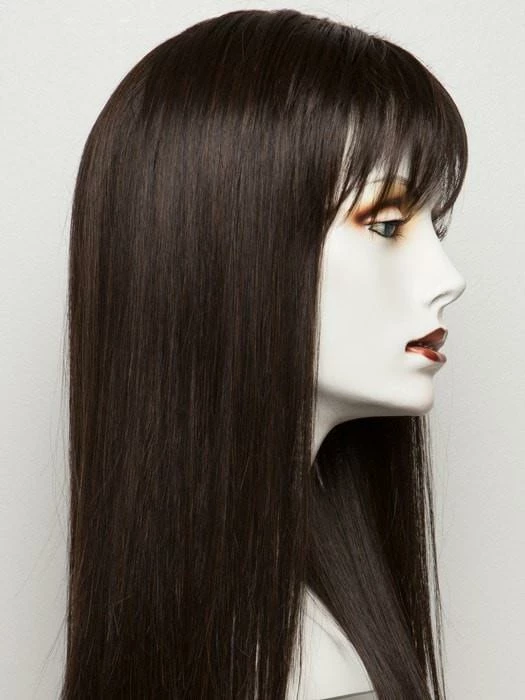 The monofilament crown is placed in the center to give a natural scalp appearance where the wig parts. The cap is designed with open wefts throughout the sides and back, making it comfortable and cool all day. The synthetic hair is pre-styled with a flat-ironed look and is ready-to-wear out of the box.
