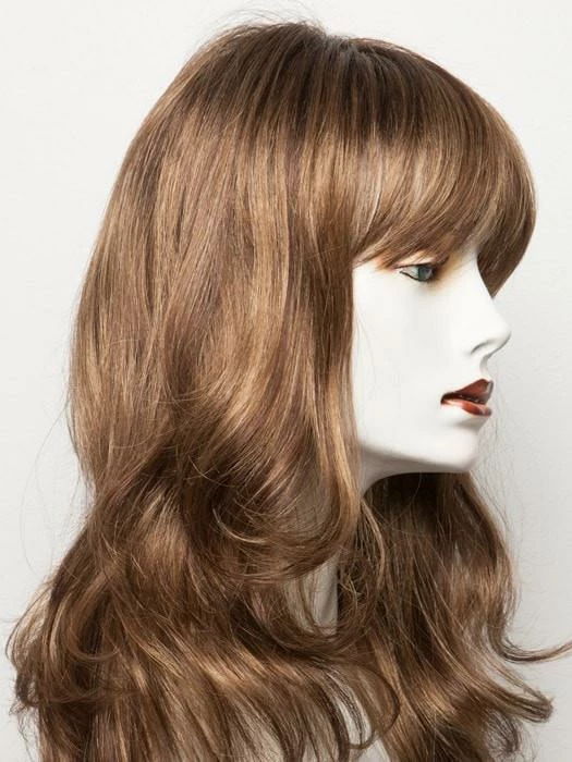 Introducing the worldwide style premiere of Pretty by Ellen Wille. Pretty is a long, layered and wavy wig with a full bang. Smoothness at the root transitions to loose curls at the ends. Shorter layers on top create luscious volume. This wig features a monofilament crown and is ideal for an average head size. The density of the ready-to-wear synthetic hair looks more like natural hair and requires little to no customization or thinning. Pretty is part of the Ellen Wille Hair Power collection.