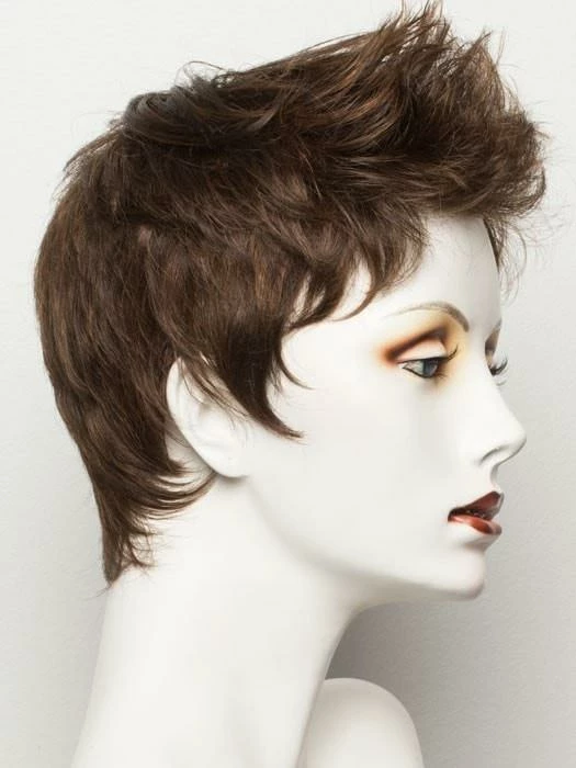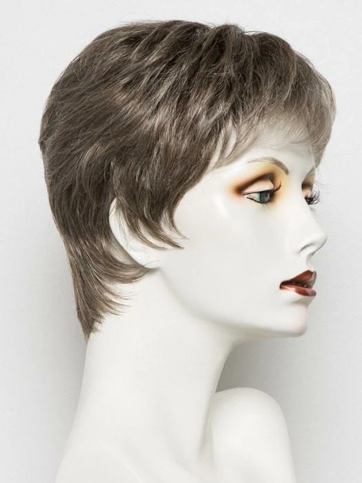 The Risk Comfort Wig by Ellen Wille is a short wig with textured layers and is made with the most natural, comfortable cap. The lace front provides styling options while providing an extremely natural looking hairline. The hand-tied cap is made with comfortable material and perfect for anyone with a sensitive scalp. The cap is also adjustable and lightweight. This wig is styled to create a feminine boy cut with versatility. To further personalize, add styling products and wear forward or spiky.