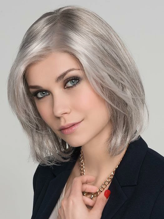 Tempo 100 Deluxe by Ellen Wille is a classic bob with textured ends, a longer side bang and face-framing layers. This mid-length style features a 100% hand-tied cap, lace front, and monofilament top, and is ideal for an average head size. The density of the ready-to-wear synthetic hair looks more like natural hair and requires little to no customization or thinning. Tempo 100 Deluxe is part of the Ellen Wille Hair Power collection.