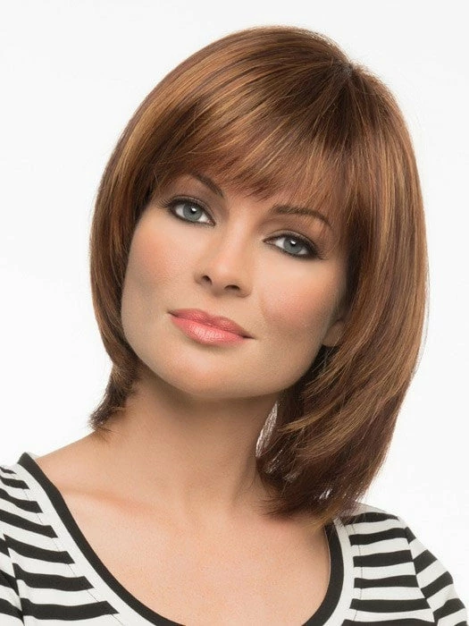Jasmine by Envy is a mid-length, smooth, and layered synthetic wig. The full hand-tied monofilament top allows you to change the part and enhances the versatility. The shorter bang can be worn as is or trimmed by your stylist. This style has perfectly cut layers that frame the face and jawline. Achieve the perfect haircut in seconds with this polished bob!