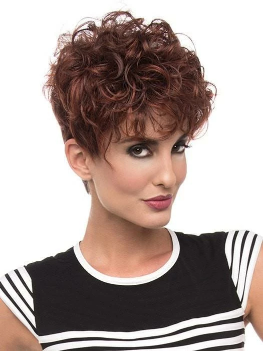 Kaitlyn by Envy is a short, trendy, and curly synthetic wig. You can shake it and wear it tousled or tightly curled. The layered side bang can be cut or trimmed by your stylist. The layered curl provides full coverage along the hairline. You can enhance the curl and texture by shaping and re-curling with your fingers.