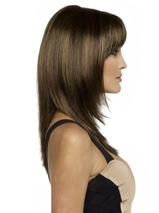 Leyla by Envy Wigs has razor edges and soft subtle bangs that will frame your face with this cutting edge style. It has monofilament part construction which creates a natural hairline as if they were growing from your own scalp. Layering through-out the sides and back offer a slight tapering effect for a more contemporary fashion forward styling.