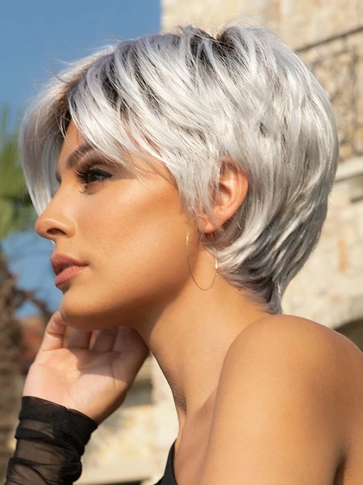 Brady by Estetica is a modern pixie cut wig with a tapered nape. The texturized layers on this synthetic style give this look a modern flair.