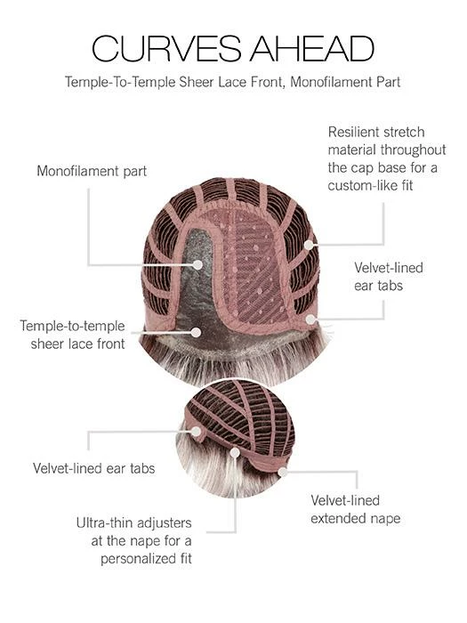 Curves Ahead by Gabor is a sophisticated bob cut with a side-swept bang. The extended lace front hairline and monofilament part make this synthetic style effortlessly natural. If you’re looking for layers and bouncy body, Curves Ahead is the short style for you!