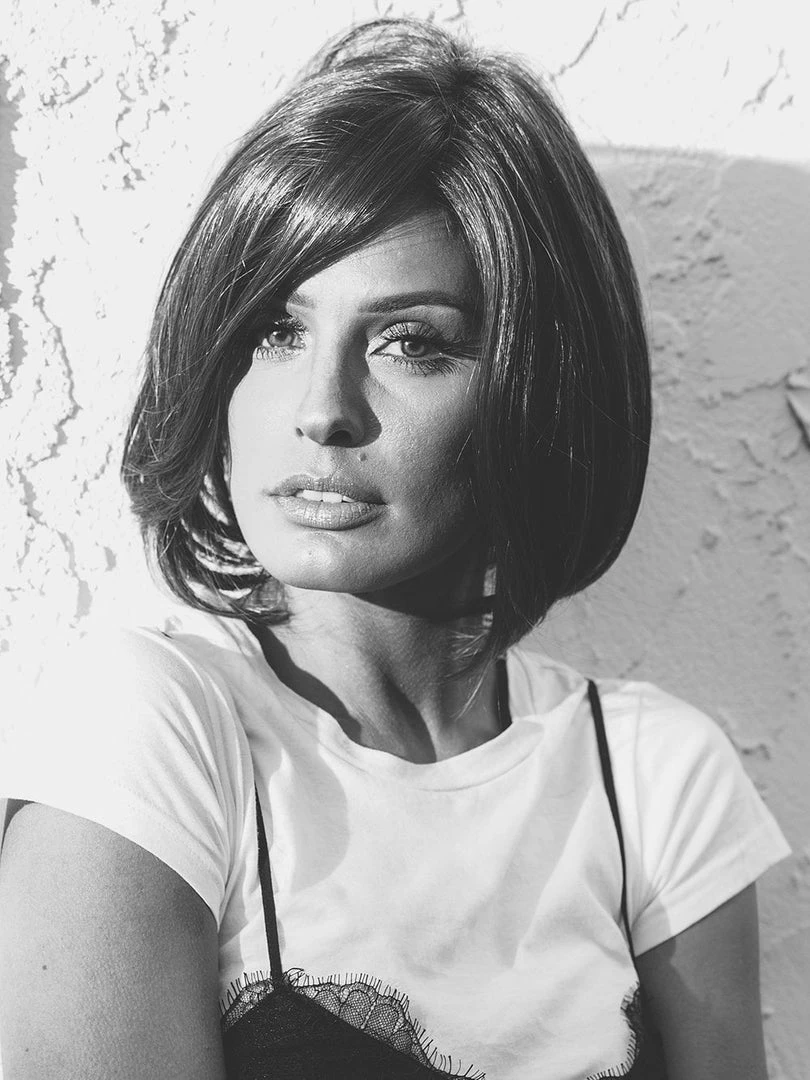 High Society by Gabor is a precision crafted, below-the-chin bob wig that includes sides that gently graduate up to a collar length nape including a hand-knotted monofilament part for varied parting options and a sheer lace front for a life-like, off-the-face styling.