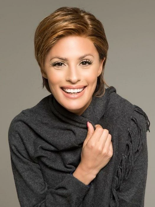 Another cool innovation by Gabor wigs! Prodigy is a short, sleek, ready to wear lace front wig with a hand-knotted top. The lace front offers a life-like hairline and allows you to style the hair off of the face. The hand-knotted top gives you even more styling options allowing you to style the hair in any direction, minimizes bulk and creating the illusion of natural hair growth. You will love the wispy, airy movement of all of the layers and the face framing fringe. Look like you stepped off the runway in this stylish short wig!