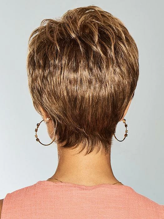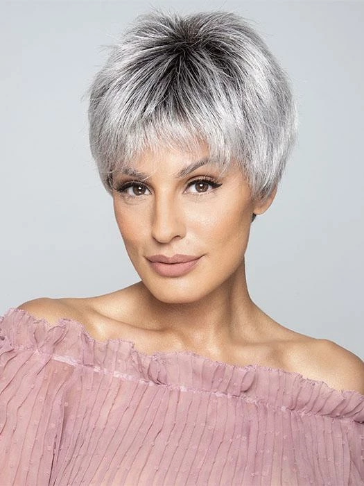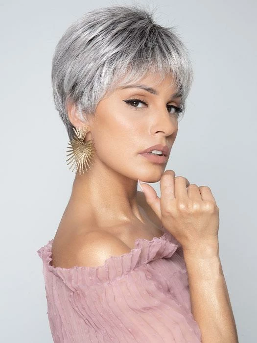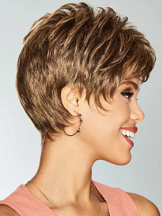 Serving Style by Gabor is a polished pixie with a little sass. With a lace front hairline, you can add some sophistication to your look by styling the short, piecey bangs away from the face. With tapered ends that highlight the cheekbones, the sculpted waves bring a modern twist to the classic pixie.