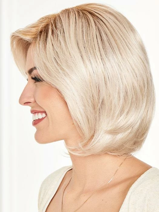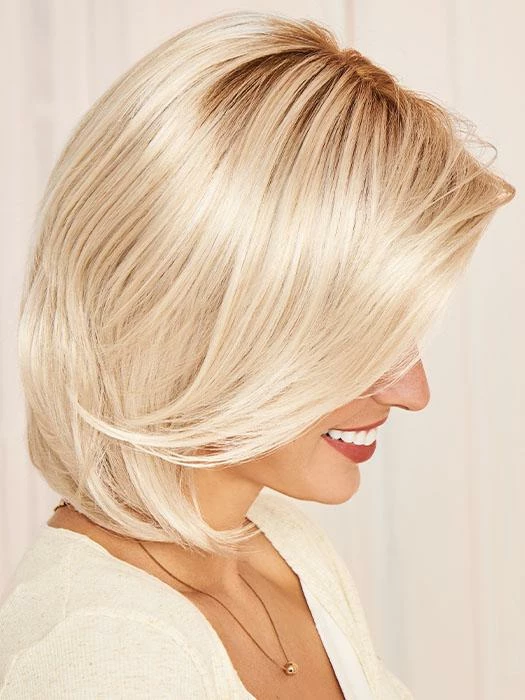 Flatter Me by Gabor is a long bob with free-flowing layers. With a temple-to-temple lace front and hand-tied top, this synthetic wig looks flawlessly natural. Wear the face-framing, feathered bang swept down or off the face to customize your style.