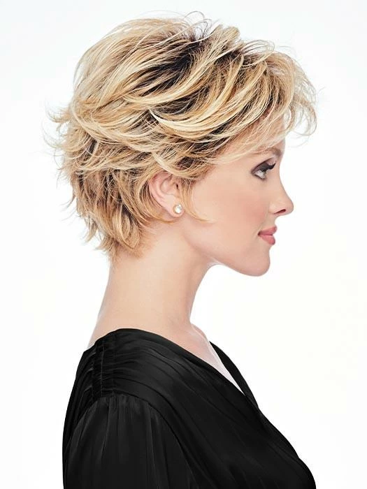 The Flirty Flip Wig by Hairdo is a textured, piecey short style. The razor-cut layers throughout make this a flattering shape for any face. Wispy lengths frame the face and give an air of softness. Style with volume or smooth close to the head. Meet your new “go-to” style!