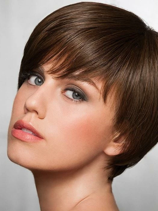 Short & Sleek by Hairdo is a short, sleek boy cut. This wig combines added length in the top and sides for a slightly asymmetrical look with shattered bangs to reflect one of the latest style trends offered in today’s top salons! Comfort features include a cap with a wide velvet band in front to prevent friction and the elimination of lace on top for added coolness. Plus, open ear tabs and an open extended nape provide added lightness. Ultra-thin adjusters at the nape insure a personalized fit. Each hand-blended color is made up of 7-11 different shades, resulting in a natural look that blends with just about anyone’s hair color.