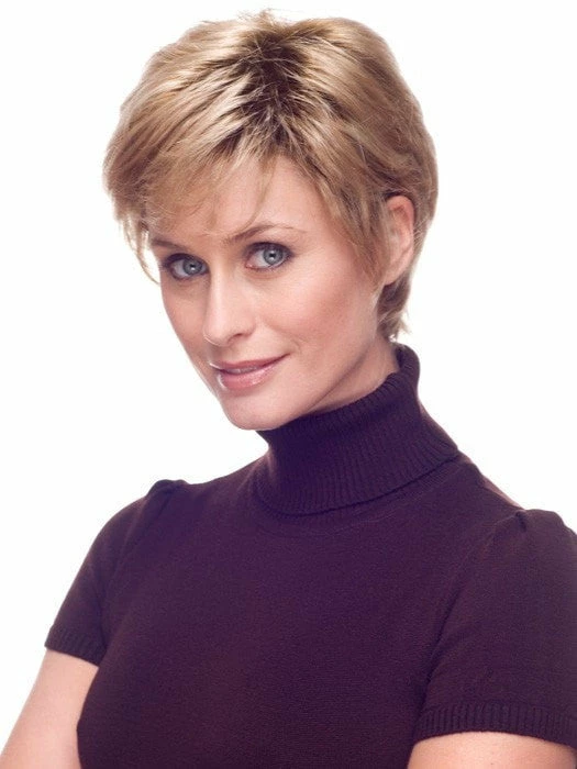 Short, close-cropped boy cut wig with all-over layering, tapered nape, an open cap for a light, comfortable fit, and a new combination of fibers that are soft, light, and vibrant. Use synthetic styling products to achieve a change in volume or texture.