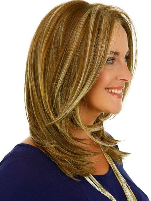 Drew is a lace front wig by Jon Renau® and is a classic mid-length layered style. The heat defiant synthetic fiber stands up to heat and humidity and allows for styling versatility. Layers along the fringe frame the face to perfection. Long layers throughout the sides and back give the hair gorgeous movement. SmartLace™ and a monofilament feature allows for styling away from the face and parting versatility. Drew is a vibrant beauty!