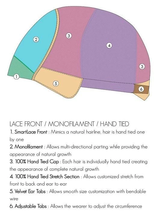 The SmartLace™ Front mimics a natural hairline and each hair is hand tied one by one. The top is made with a sheer material to create a scalp look and create natural volume. The entire cap has is hand-tied for comfort, natural movement, and styling versatility. The synthetic hair is pre-styled with soft rounded layers and is ready-to-wear out of the box.