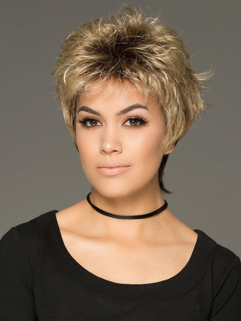 Best Seller | Drew by Noriko is an overall point-cut layered wig. The chic cropped nape added to perfect volume at the crown make a bold statement in this short, “edgy” pixie cut wig. Also available in gray colors, beautiful shades of grey!