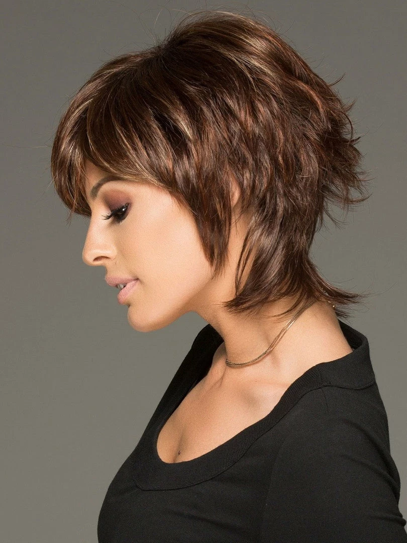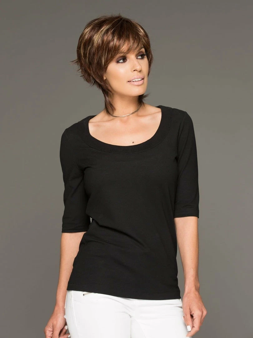 Millie by Noriko is a short shag cut that has been tailored for today’s modern women. The precision cut and face framing fringe create a stunning silhouette. This cutting edge design has gorgeous layers and a long wispy nape for texture and easy styling. Using only the finest materials available, Noriko wigs are meticulously handcrafted into what rightfully has been described as…The Ultimate Wig Experience. Also available in gray colors, beautiful shades of grey.