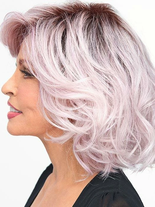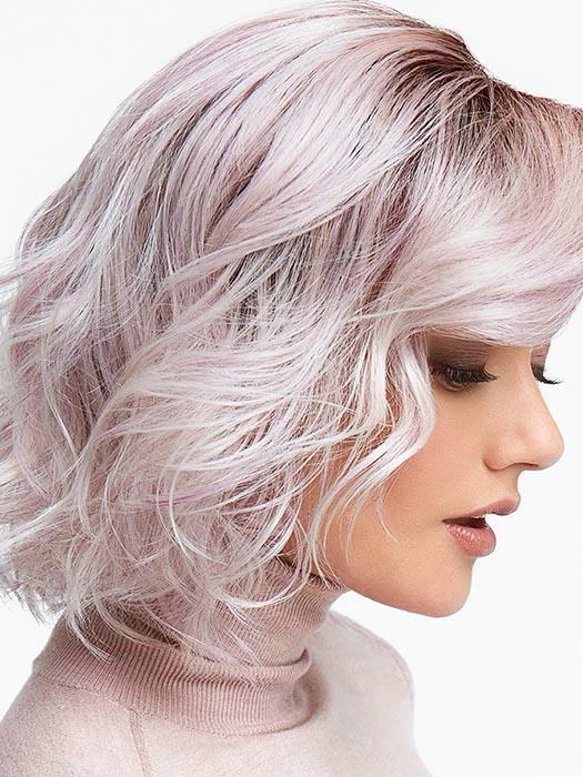 NEW colorful wig by Raquel Welch: Dare to turn heads in a sophisticated and on-trend look. This above-the-shoulder layered bob is loaded with wave and curl. The light lavender tone puts you at the forefront of modern hair with a rooted top and fashion-forward fantasy shades of metallic, light purple hues. Including a lace front monofilament part for off-the-face styling versatility, with open wefting, IF YOU DARE by Raquel Welch also features our heat-friendly Tru2Life® fiber that allows you to wear this style wavy right out of the box, or blown out and straightened to suit your own personal style!