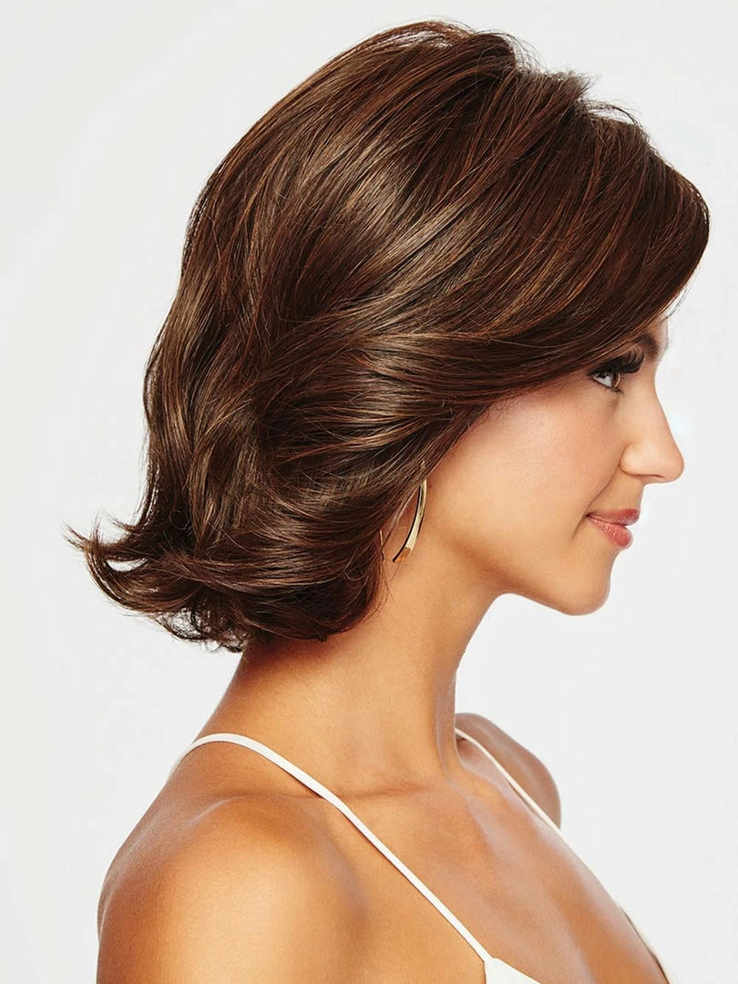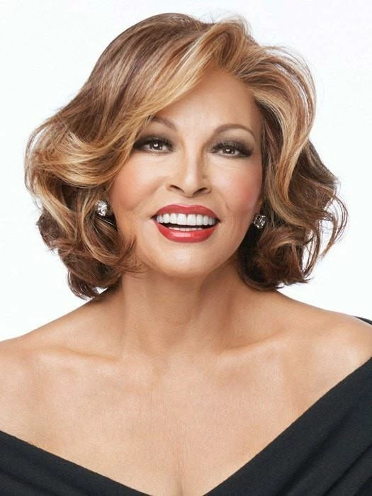 BEST SELLER | Crowd Pleaser Wig by Raquel Welch is a stunning, polished mid-length cut with light waves. It includes dramatic side swept bangs and long, subtle layering throughout. This style features a Sheer Indulgence™ lace front that creates a natural looking hairline and offers off-the-face styling.