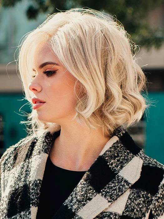 Flirt Alert by Raquel Welch is a synthetic bob wig that’s loaded with body and movement, this flattering style includes an eyelash bang and curled back waves for a thoroughly modern vibe. Slightly tapered ends and natural volume bring this lace front wig’s classic silhouette up to date.