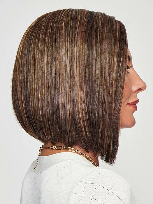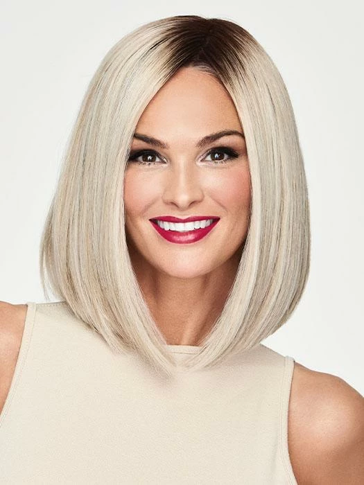 Current Events by Raquel Welch is a Wigs.com Exclusive! This A-line bob has a shorter back for a clean shape that bevels slightly at the bottom. Current Events is a heat-friendly synthetic wig that is complemented with a temple-to-temple lace front and a left monofilament part. This contemporary bob wig is sleek, straight, and classic!