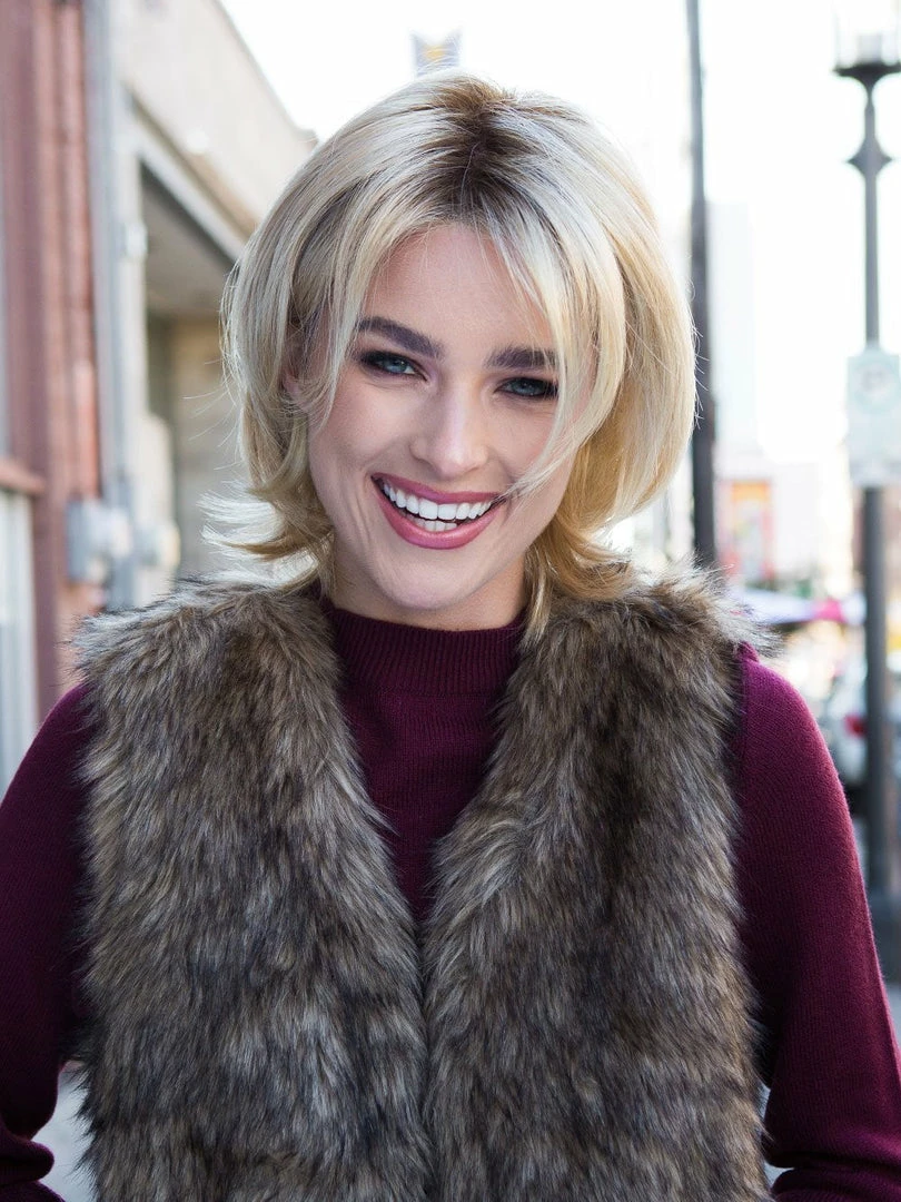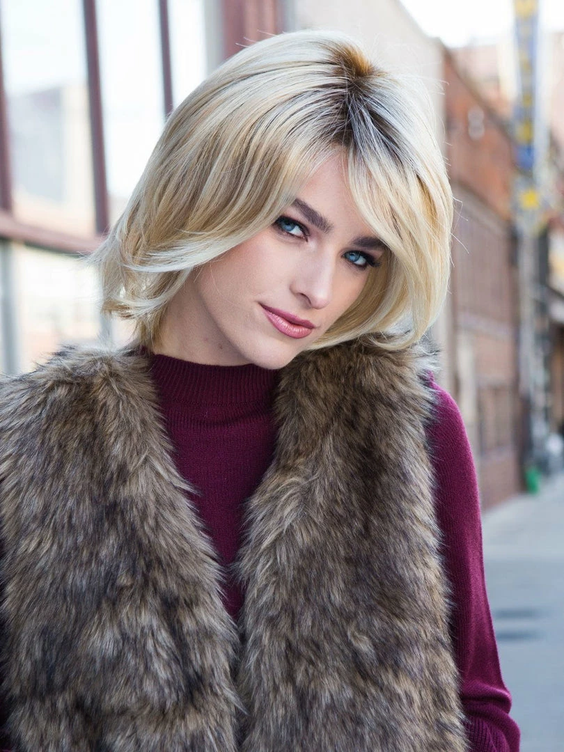 BEST SELLER | Play it Straight by Raquel Welch is a short, straight, and layered bob cut synthetic wig. The sheer lace front creates the look of your own hairline, giving you the most natural appearance. The monofilament part is hand-tied and sheer mimicking natural hair growth and blending in with all skin tones. Play It Straight is chic and classic yet fashion-forward. This short wig is cut, styled, and ready-to-wear. To personalize, trim the bang and wear it behind the ear. Play It Straight is also available in gray colors, beautiful shades of grey! Watch video and read customer wig reviews below!