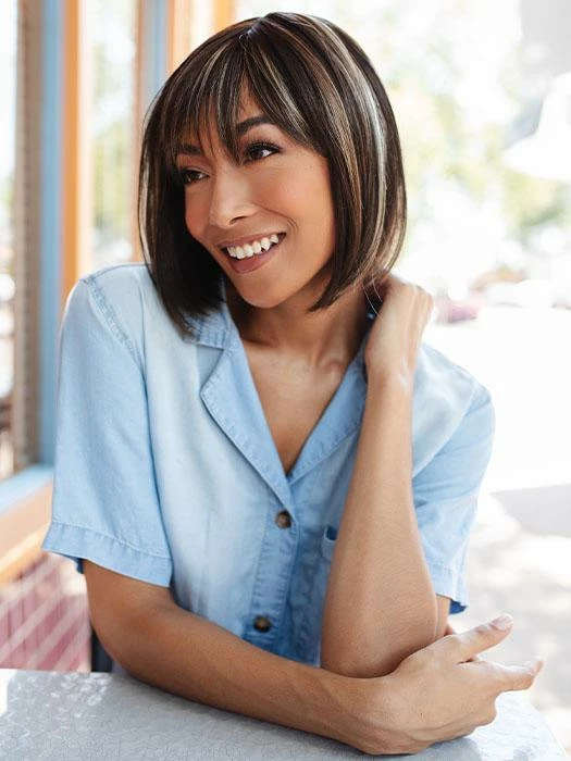 Scorpio PM (Partial Mono) by Rene of Paris is a chin length bob with wispy bangs that perfectly frame the face. Pointed ends allow for the most natural movement and flow. Also available in Scorpio.