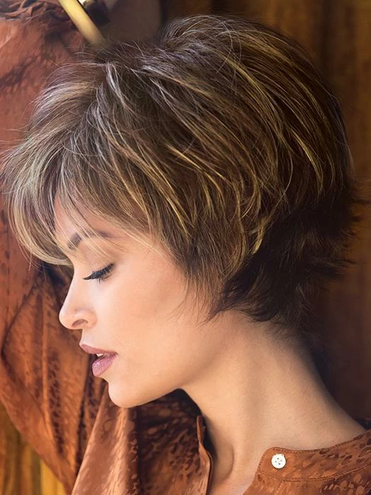 Coco by Rene of Paris is a wispy textured short wig that’s look is charming and classic. Featuring a traditional cap construction for the most comfortable and cool fit. The face framing fringe is flattering and the tousled layering throughout adds a fun, fresh look. Also available in gray colors, beautiful shades of grey!