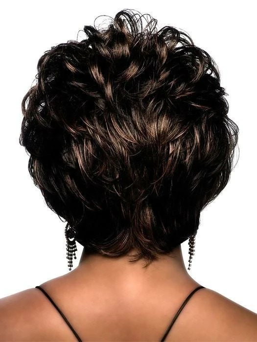 The Joleen by Vivica Fox is a short full-layered shag cut with a natural looking side skin part and a stylish tapered nape. This synthetic wig is part of Vivica Fox’s Pure Stretch Cap Collection.