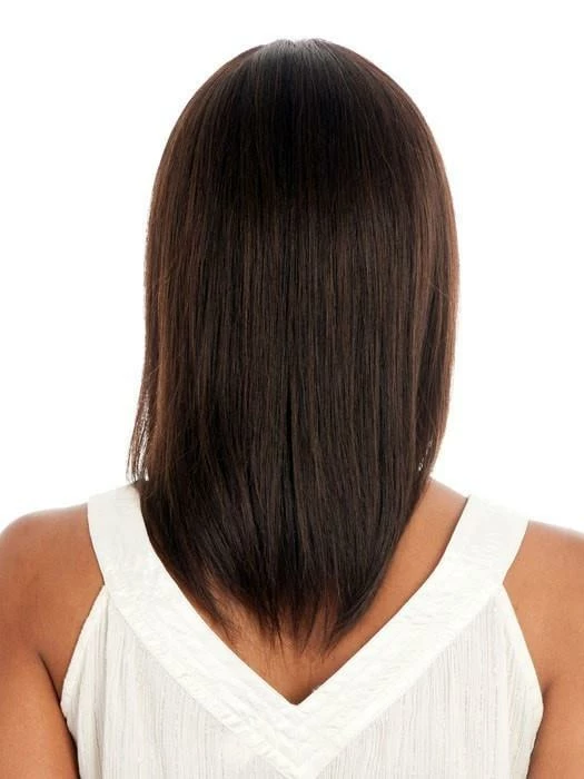 The H-202 by Vivica Fox is a sleek, silky straight page human hair wig with 17″ long cut, wispy bang, and a natural looking center skin part. This 100% human hair wig is part of Vivica Fox’s Pure Stretch Cap Collection.