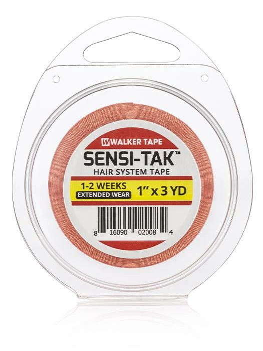 The Sensi-Tak™ Red Adhesive Tape by Walker Tape measures 3 yards and helps secure your wig in place. It’s intended for use on the polyurethane material only. The tape is an inch wide and can be cut to the desired length and shape with a pair of small scissors. You will replace your adhesive strips with every wear. The liner is red but the actual tape is clear.